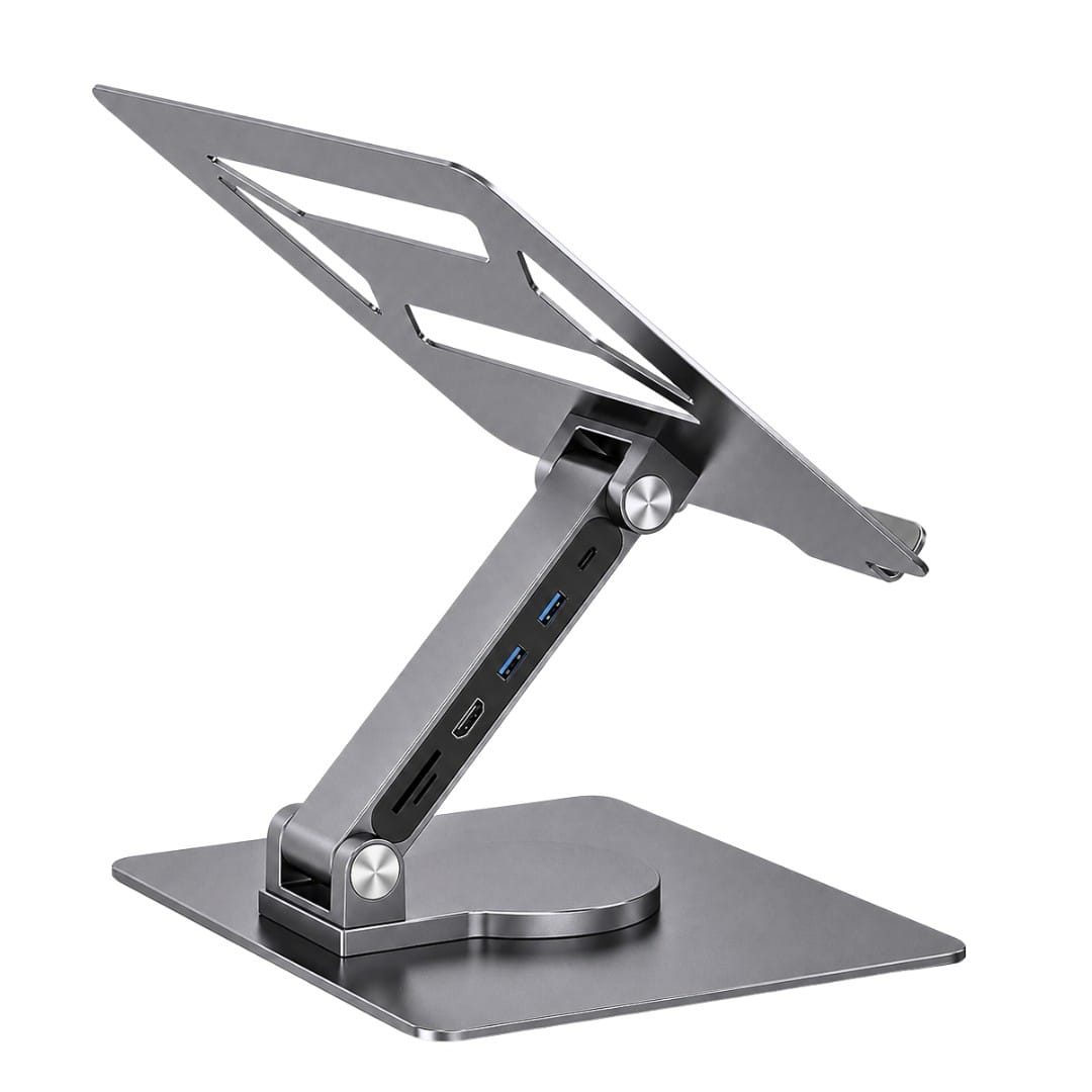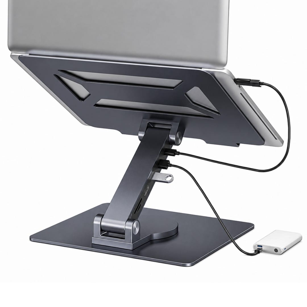 UREDAN RADNI STO – Unapredi svoj radni prostor uz praktičan nosač za laptop sa integrisanim HUB-om. Podigni laptop na idealnu visinu za bolju ergonomiju, rastereti sto i poveži sve uređaje jednim potezom.